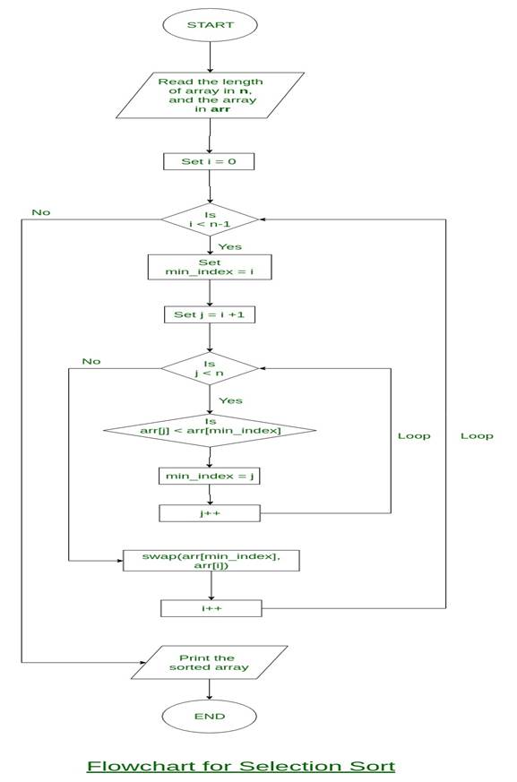The selection sort algorithm sorts an array by repeatedly finding the minimum element (considering ascending order) from unsorted part and putting it at the beginning. The algorithm maintains two subarrays in a given array.