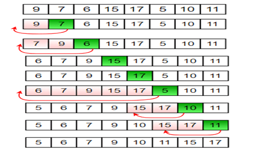 ……a) Pick element arr[i] and insert it into sorted sequence arr[0…i-1]